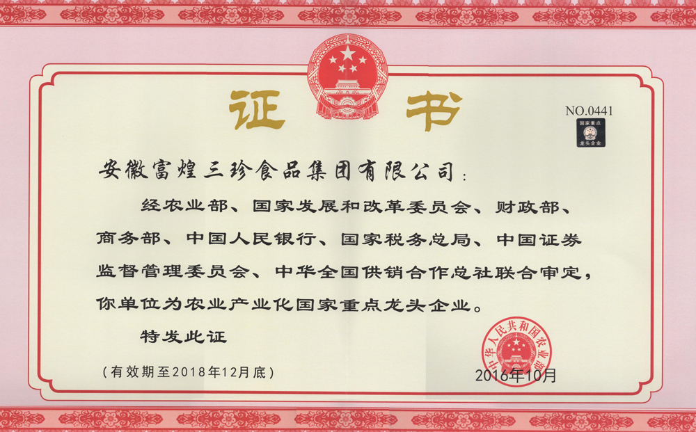 三珍食物农业工业化国家重点龙头企业