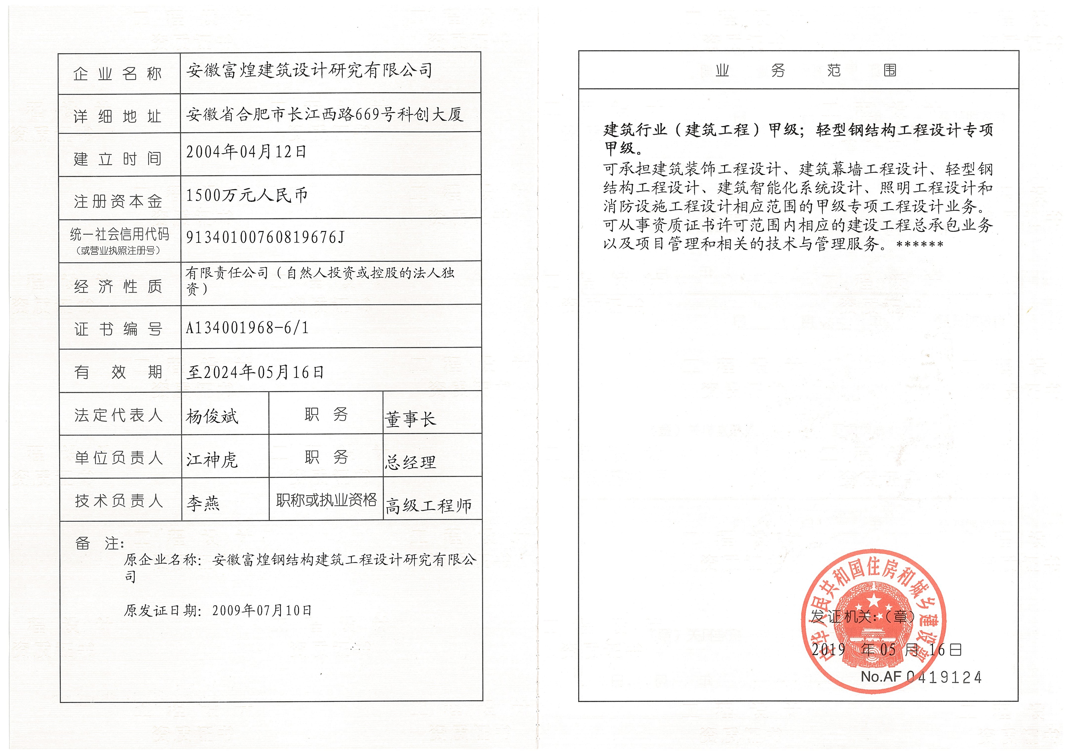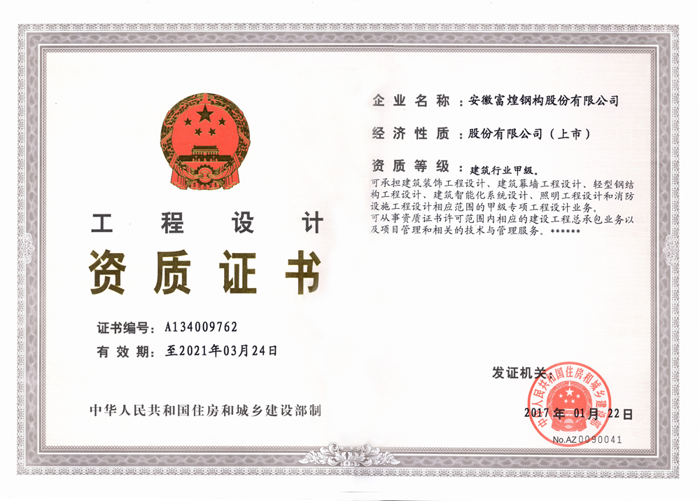 修建行业甲级设计资质